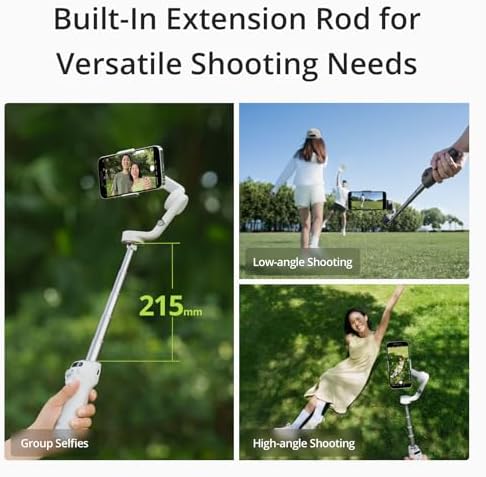 Lightweight, Compact, and Extendable – With a foldable design and weighing only 309g, this cell phone gimbal stabilizer is easy to take anywhere. Extend the built-in extension rod to get creative angles or the perfect selfie.