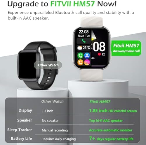 Handy Bluetooth Features: FITVII fitness watch goes beyond health and fitness, offering a range of convenient features. Built-in AAC Audio Technology, enjoy crystal-clear Bluetooth calls directly from your wrist. Receive texts and app notifications, locating your misplaced phone has never been easier. Enjoy your favorite tunes on the go with Bluetooth music playback control, and capture memories effortlessly with remote camera control, all from the convenience of your wrist.