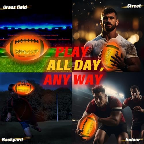 Glow in the Dark Football: Cadyaw light up football offers you the professional feel of an official size 9 football, crafted with the perfect weight for champions, making every catch and throw full of vitality, elevating your game to a new level. Equipped with an intelligent reset mechanism, it stays lit during play, offering a new way to enjoy the game even on the darkest nights after the sun goes down.