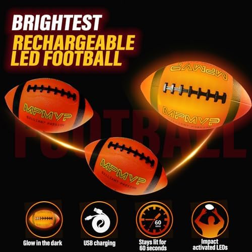 Rechargeable & Bright: Cadyaw rechargeable lighted football only needs a 30-minute charge for long-lasting use, ensuring precious moments of American football fun with family and friends. Cadyaw led football is equipped with impact-activated LEDs that stay lit for at least 60 seconds once activated. They guarantee maximum visibility in the dark and automatically shut off after the game.