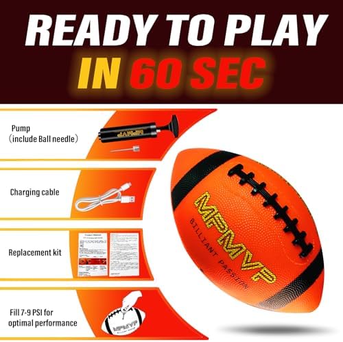 Play All Day Any Way: Cadyaw glow in dark football comes with everything you need to get started, including a pump (with a built-in needle), a Type-C charging cable, a ball bag and an instruction manual. It is recommended to inflate to 7-9psi for optimal performance. Designed for convenience, perfect for instant fun at any football game or outdoor sporting event.
