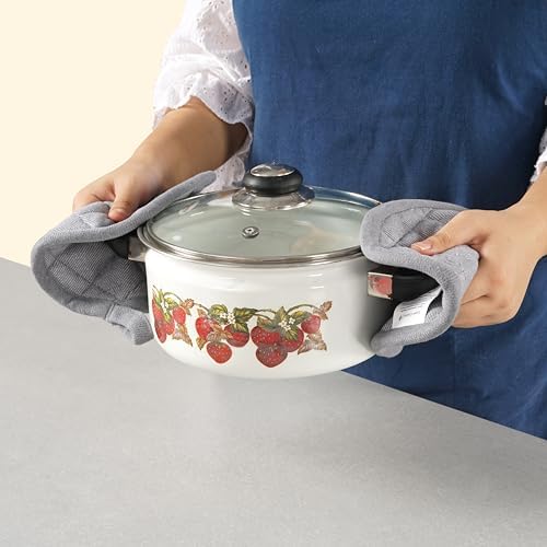 Heat-Resistant Heroes: Our oven mitts heat resistant and potholders, lined with quilted cotton, bravely withstand up to 500°F (260°C). No more screaming when you grab that hot pan! They ensure a firm grip, making it easy to handle hot dishes, pots, and pans safely and comfortably. Plus, they add a touch of style to your kitchen decor!
