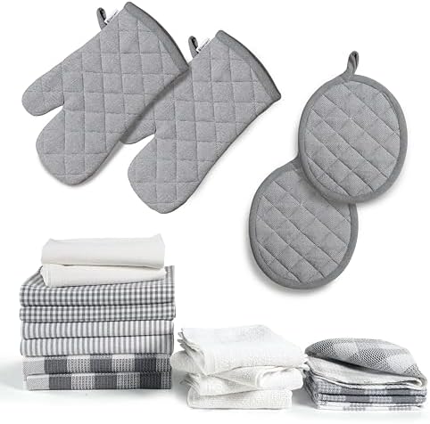 Oven Mitts and Kitchen Towel Sets with Pot Holders, 500 Degree Heat Resistant Kitchen Mitts and Pot Holders, Kitchen Washcloth Towel Set, Pure Cotton Kitchen Hand Towels Sets