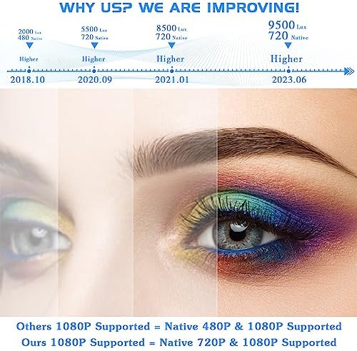 [Three Added Bonus Better than others] (1) Higher Brightness: Our upgraded brightness is higher than others. It is much brighter than most mini projectors. (2) Better Native Resolution: our wifi mini projector’s native resolution is 1280 x 720P, with 1920x1080P supported, better than 90% mini projectors which are native 480P. (3) Add Bluetooth: It is a mini projector with wifi and bluetooth, you can hook up external speakers via bluetooth, the sound is greatly enhanced and sounded theater quality.