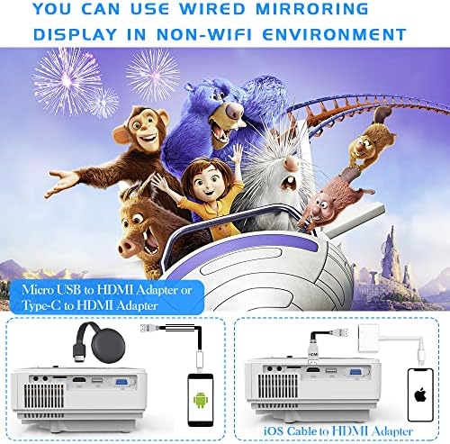 [Convenient WiFi Connection] Connecting deivces with our wifi projector through wifi. We have TWO things to make it friendly user: (1) Updated the wifi connection steps, make it easier and more stable; (2) Updated the wifi connection speed, you can connect the wifi more quickly. So own our wifi projector, you can enjoy it anytime anywhere, it makes your life easier and happier.