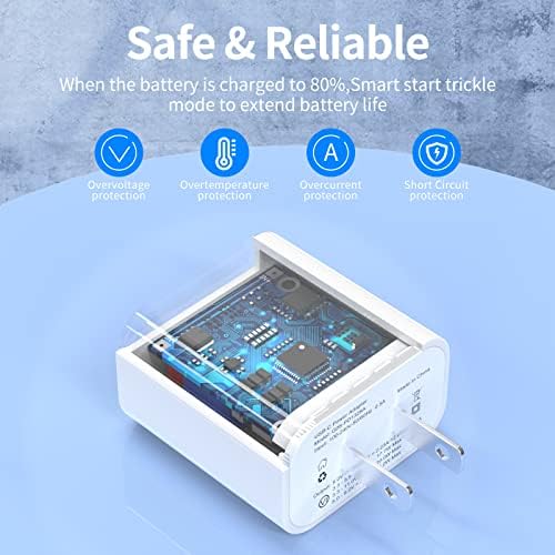 it matches the current as your device’s need automatically. 20W PD USB C charger block provides multi protections against over-current, over-voltage, over-heating and short-circuit, keep your device safe and ensure the safer charging overnight.