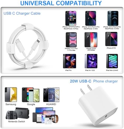 【Universal Compatibility】Works With for iPhone 14 Pro 13 Pro/12/12 Mini/12 Pro/12 Pro Max/SE 2020/11/11 Pro/11 Pro Max/XS/XS Max/XR/X 8 Plus, Pad. This Power Delivery 3.0 FAST charger also charge for iPhone 7 6 Plus, iPhone 5 5c 5s SE in a original charging speed.